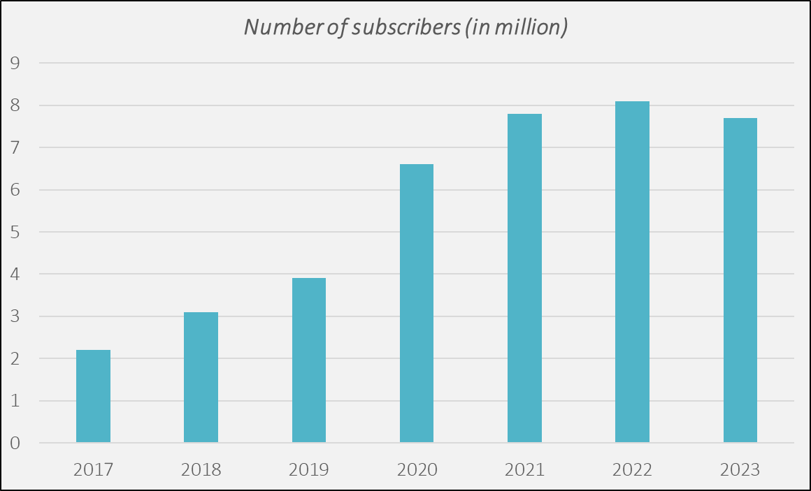 As expected, Chegg benefited from the pandemic, and the number of subscribers doubled between 2019 and 2021.