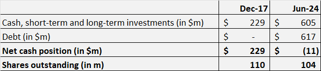 We can best illustrate that through the balance sheet of the company between the end of 2017, and June 2024: