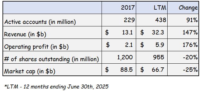 Compared with 2017, PayPal today is significantly cheaper, and that is without even accounting for the excess cash on its balance sheet.